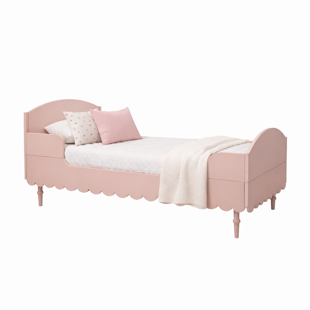 Uniwersalna stylistyka sprawia, że łóżko dziecięce 120x200 świetnie pasuje do wielu aranżacji wnętrz - od stylu vintage i romantycznego, przez skandynawski, aż po popularny styl boho. Delikatny różowy kolor sprawia, że łóżko pięknie prezentuje się w pokoju dziewczynki, tworząc przytulną i stylową przestrzeń do snu i odpoczynku.