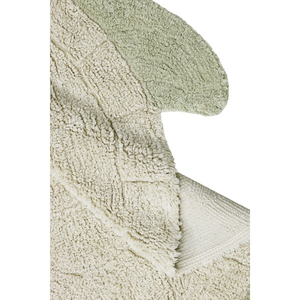 Miękki, bawełniany dywanik Sea Turtle jest uszyty w sześciokątny wzór symulujący geometryczną skorupę poprzez połączenie wysokich i niskich run w naturalnym kolorze. Głowa, łapy i ogon są tuftowane w krótkich i średnich oliwkowozielonych stosach, tworząc sylwetkę uroczego żółwia morskiego.