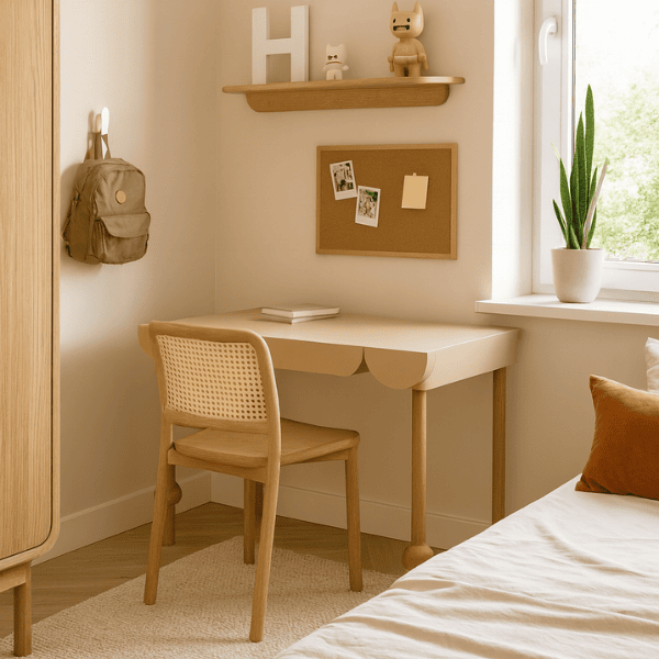 To wyjątkowe biurko zaprojektowano z myślą o dzieciach, które potrzebują wygodnej i estetycznej przestrzeni do nauki, rysowania i rozwijania swoich pasji. Subtelny design i naturalne materiały sprawiają, że mebel idealnie wpisuje się w nowoczesne, skandynawskie wnętrza.