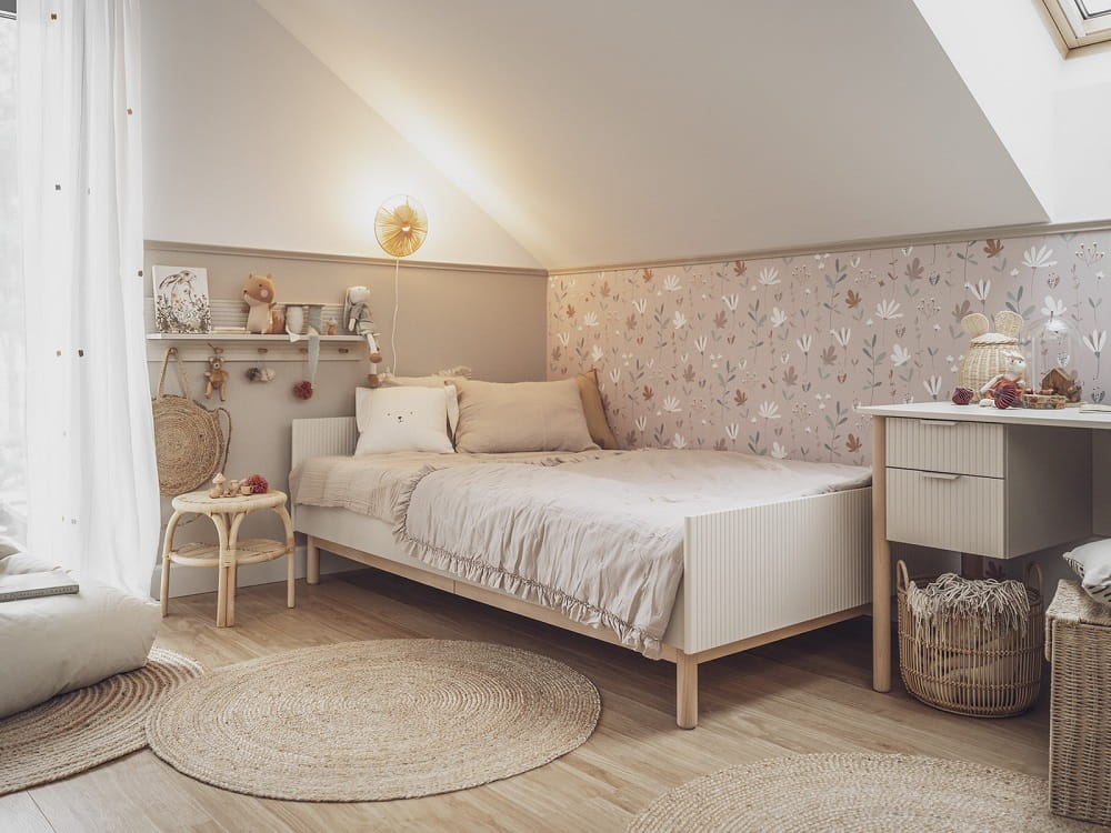 Design kolekcji kładzie nacisk na detal i elegancję – ryflowane fronty dodają charakteru i klasy, zaś delikatnie zaokrąglone narożniki gwarantują bezpieczeństwo młodych użytkowników. Estetyczne metalowe uchwyty oraz drewniane bukowe nóżki nadają meblowi lekkości i finezji.