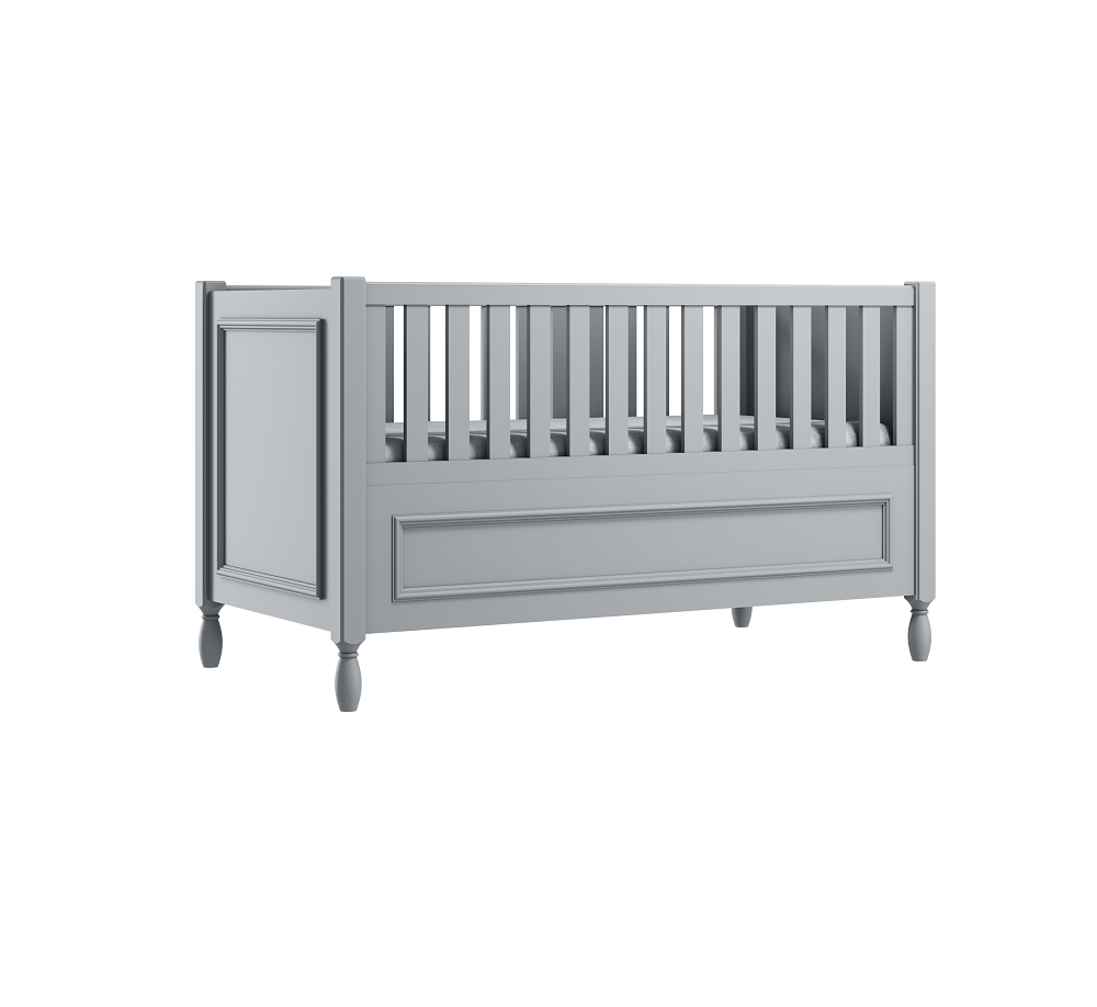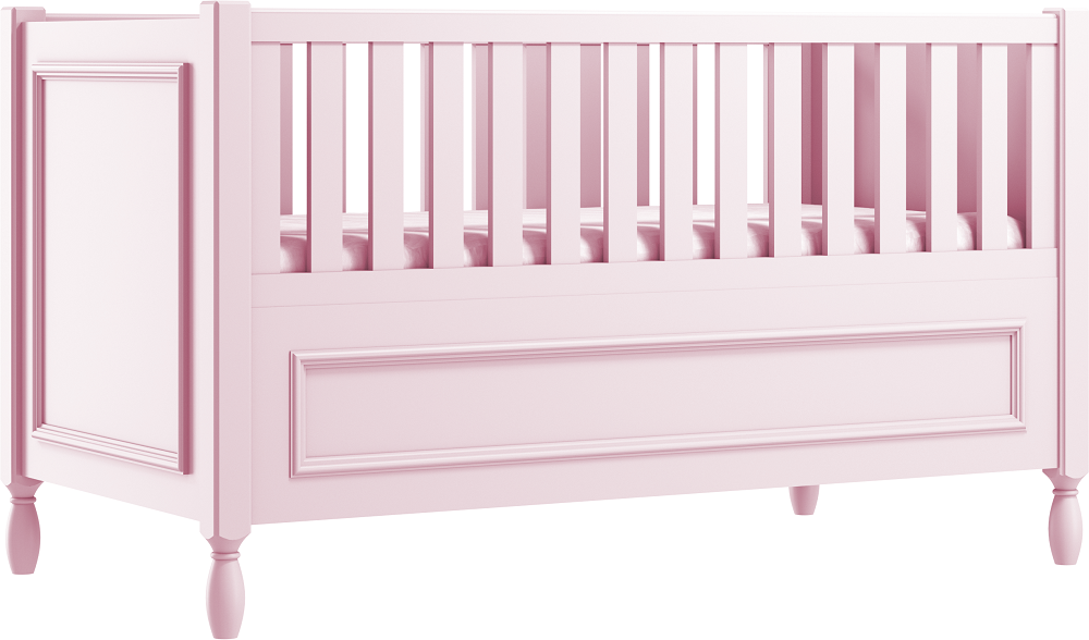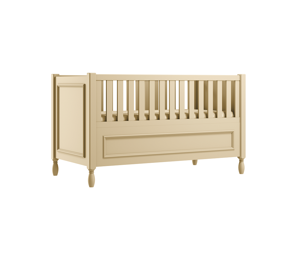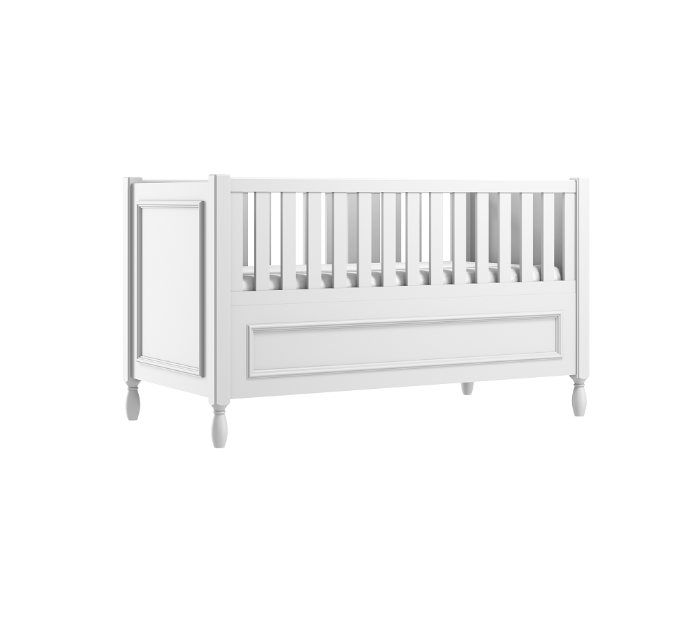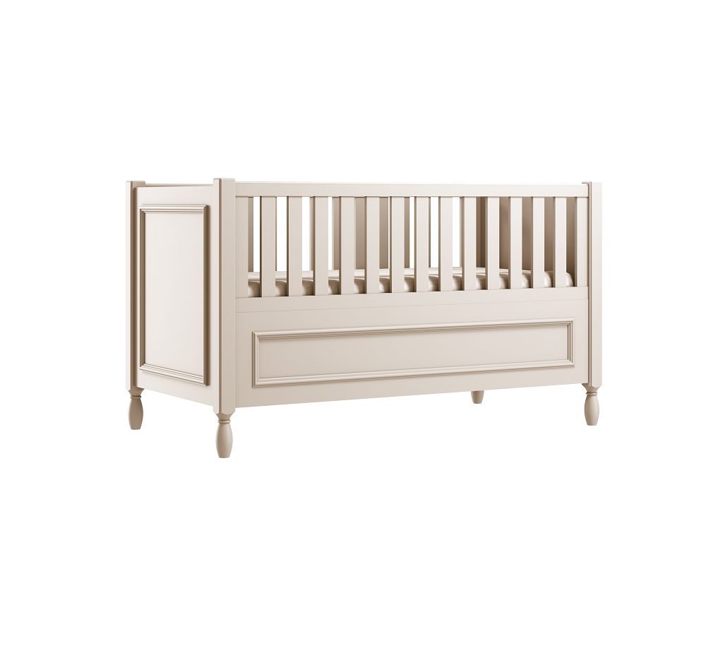 Wykonanie wysokich, gładkich boków łóżeczka z ozdobną ramką, nadaje łóżku eleganckiego charakteru.