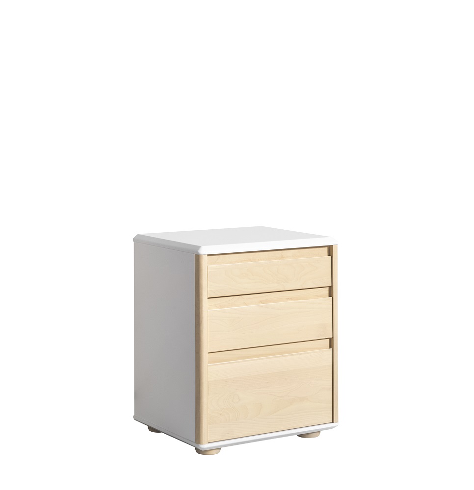 Trzy pojemne szuflady pomieszczą wszystko czego Twoje dziecko potrzebuje do zabawy i nauki. Zastosowaliśmy konstrukcję z drewna brzozowego, którą idealnie komponuje się z białymi (lub szarymi) elementami.