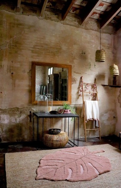Dywan bawełniany Monstera Vintage Nude 120 x 180 cm - Lorena Canals