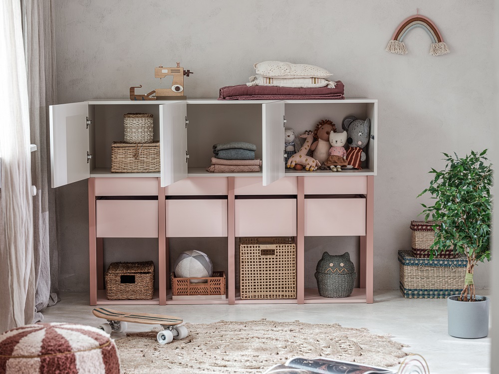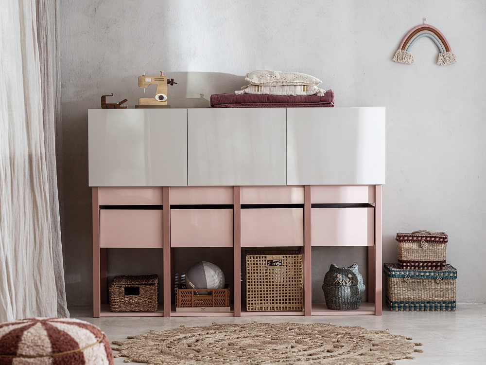 Komoda dziecięca Tweens - różowa, szer. 155 cm