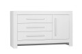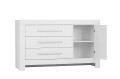Bardzo duża i pojemna komoda posiada 3 szuflady i drzwi na wysokiej jakości prowadnicach z hamulcem i samodomykiem. Drzwi mogą być zamontowane dowolnie z lewej lub prawej strony.