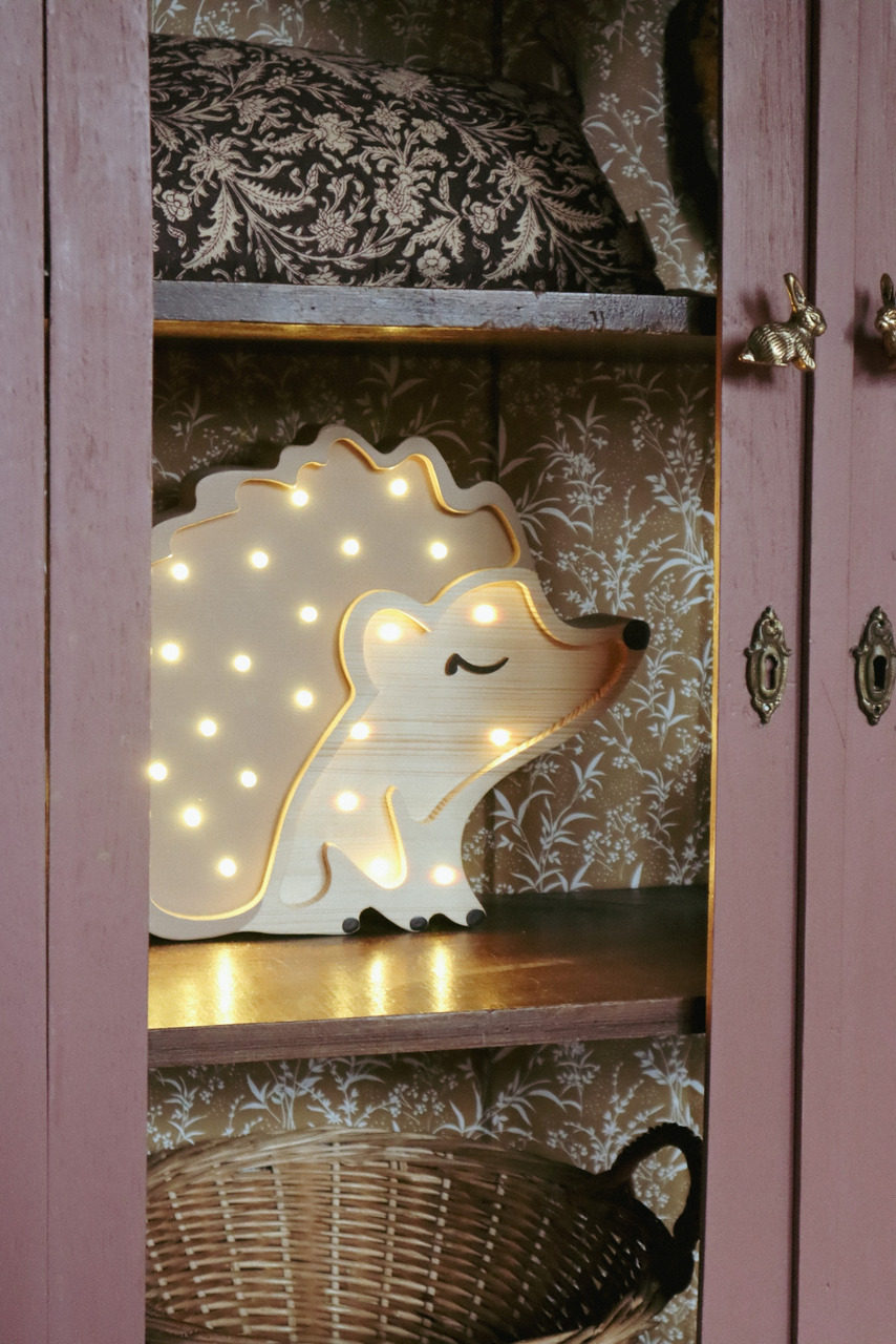 Lampka Little Lights Jeżyk to idealny wybór do naturalnych, skandynawskich i leśnych aranżacji pokoju dziecięcego. Jej przyjazna forma sprawia, że pasuje zarówno do pokoju niemowlaka, jak i przedszkolaka czy starszego dziecka.