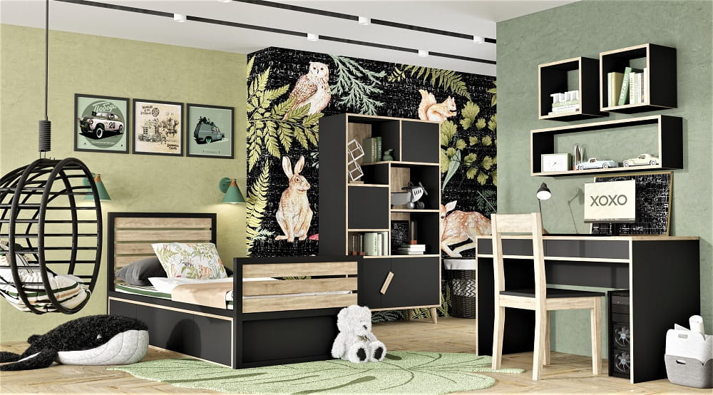 Kolekcja mebli Bami Tutu Black to połączenie skandynawskiego i nowoczesnego stylu, który jest obecnie bardzo modny. Klasyczne połączenie czarnego koloru i elementów z drewna dębowego idealnie wpasuje się w każde wnętrze dziecięcego i młodzieżowego pokoju. Ta uniwersalna stylistyka mebli Bami z kolekcji Tutu Black sprawdzi się zarówno dla chłopca jak i dziewczynki. Proste wzornictwo bez zbędnych detali, pozwala na łączenie mebli pochodzących z tej samej kolekcji lub z innymi meblami dostępnymi w naszej ofercie.