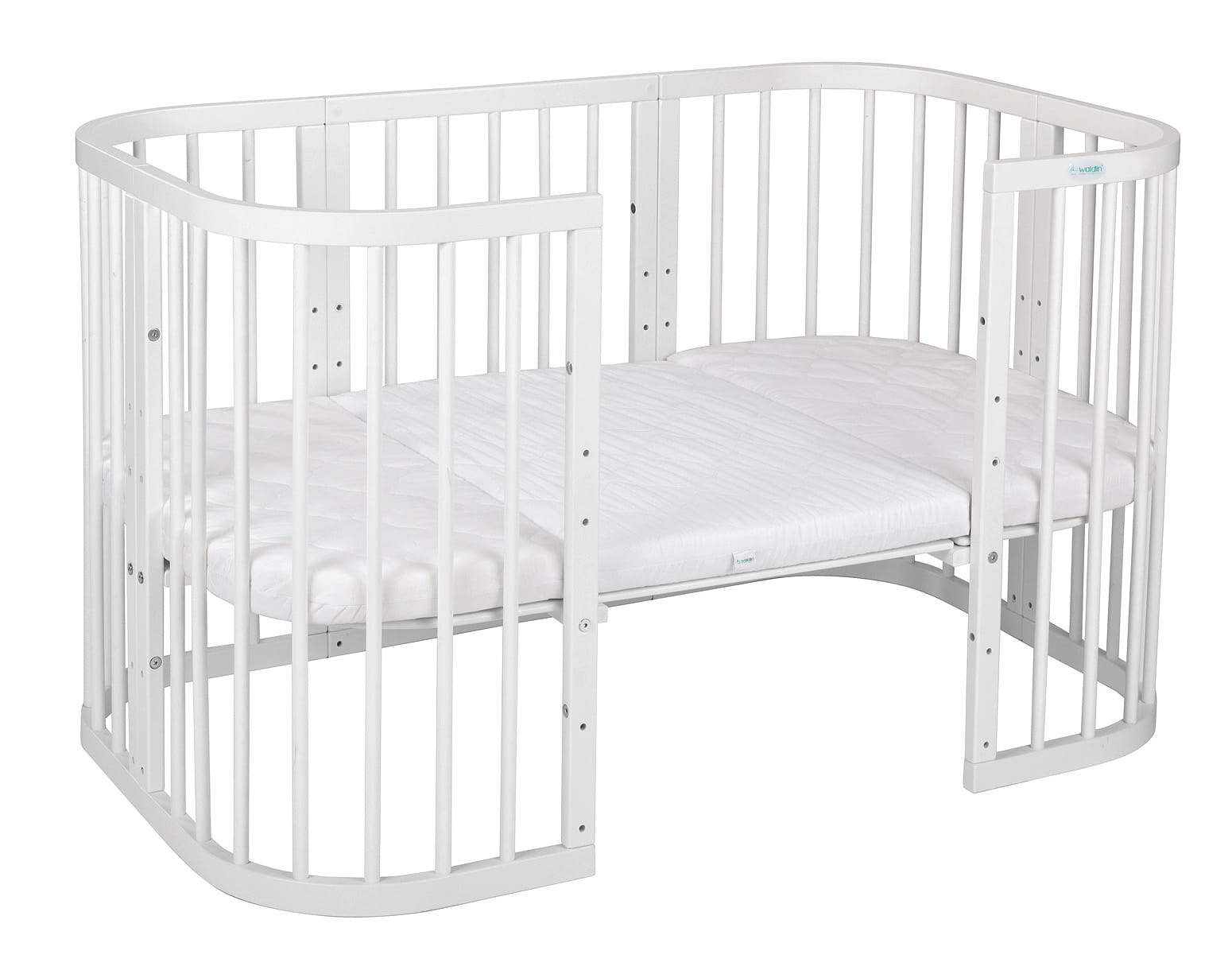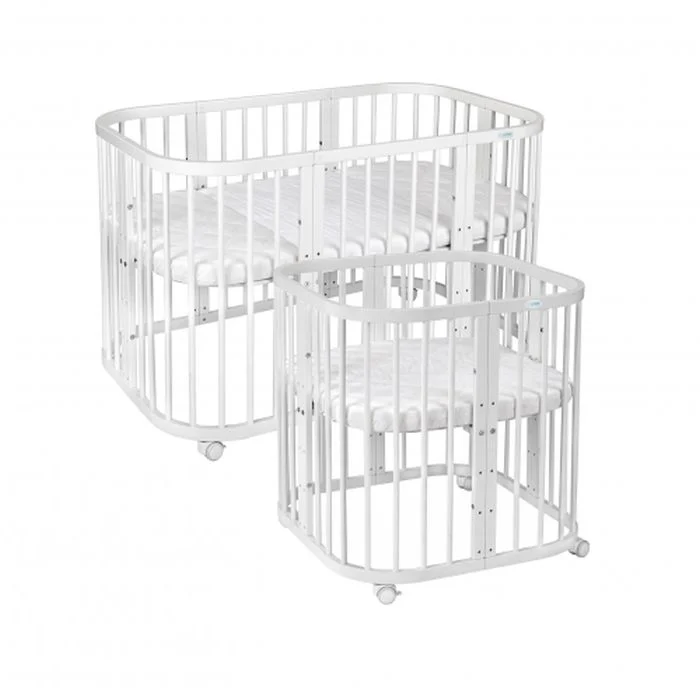 To łóżeczko 7 w 1 łączy w sobie funkcje dostawki, mniejszego łóżeczka, większego łóżka, kojca, przewijaka, stolika oraz dwóch krzesełek, dzięki czemu jest idealnym rozwiązaniem dla rozwijającej się rodziny.