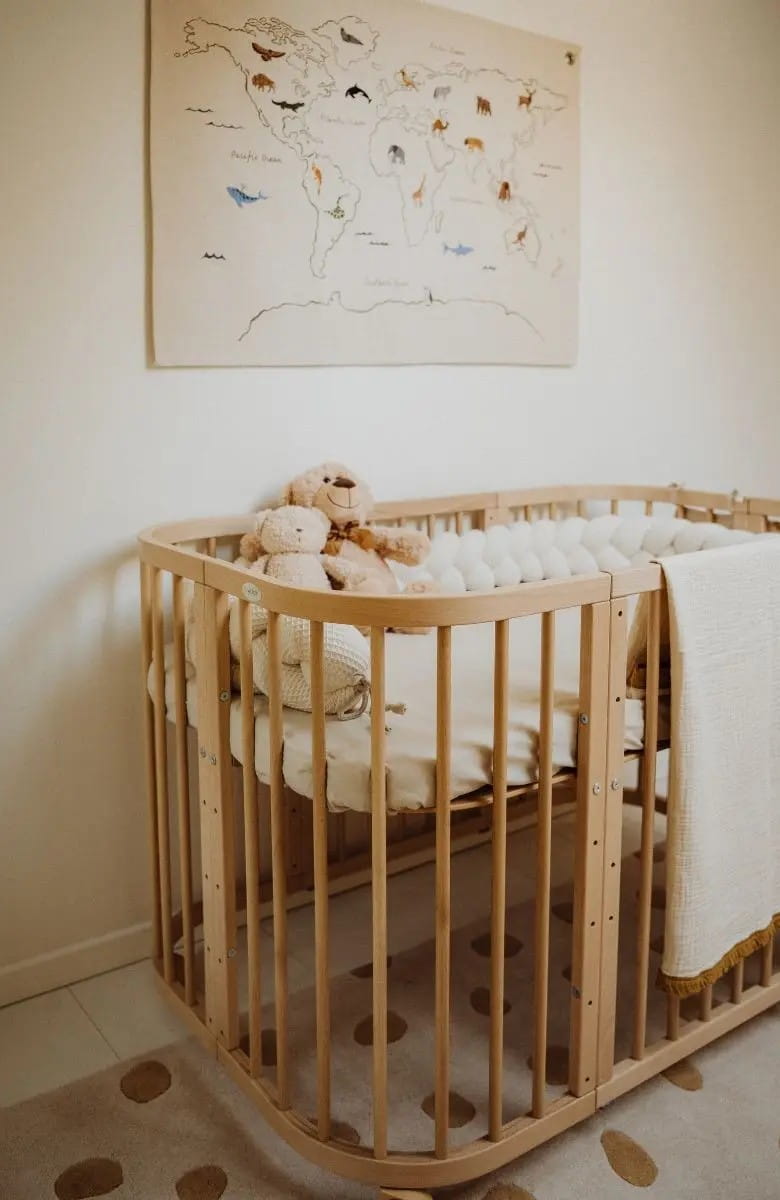 To łóżeczko w naturalnym odcieniu drewna harmonijnie wpisuje się w aranżacje inspirowane stylem boho oraz naturalnym, idealnie nadając się do pokoju dziecięcego. Zabezpieczone tylko lakierem, jego powierzchnia jest doskonale chroniona, a neutralny design pozwala na swobodne dostosowanie do indywidualnych upodobań. Dzięki minimalistycznemu wyglądowi, łóżeczko sprawdzi się zarówno w pokoju noworodka, jak i starszego dziecka, niezależnie od płci, eliminując potrzebę zakupu nowych mebli w przyszłości. Decydując się na to łóżeczko, możesz być spokojny o przyszłe potrzeby aranżacyjne!
