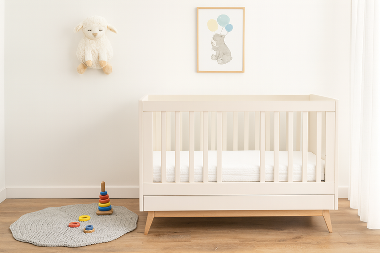 Dodatkowym atutem jest możliwość zdjęcia jednego z boków, dzięki czemu łóżeczko można przekształcić w praktyczne pierwsze łóżko. Na życzenie dostępna jest również barierka zabezpieczająca oraz dedykowany materac (120×60 cm), zapewniające maksymalny komfort snu.