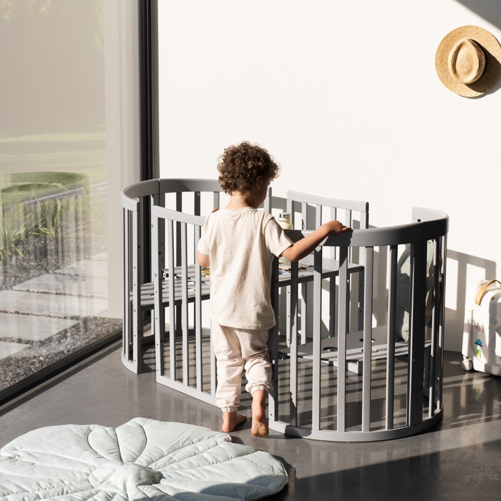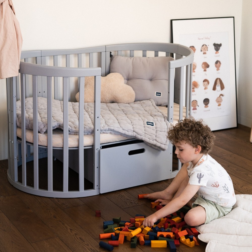 Owalne łóżeczko 7w1 rośnie razem z dzieckiem przez wiele lat, dostosowując się do jego zmieniających się potrzeb. Jeden produkt oferuje wiele możliwości.