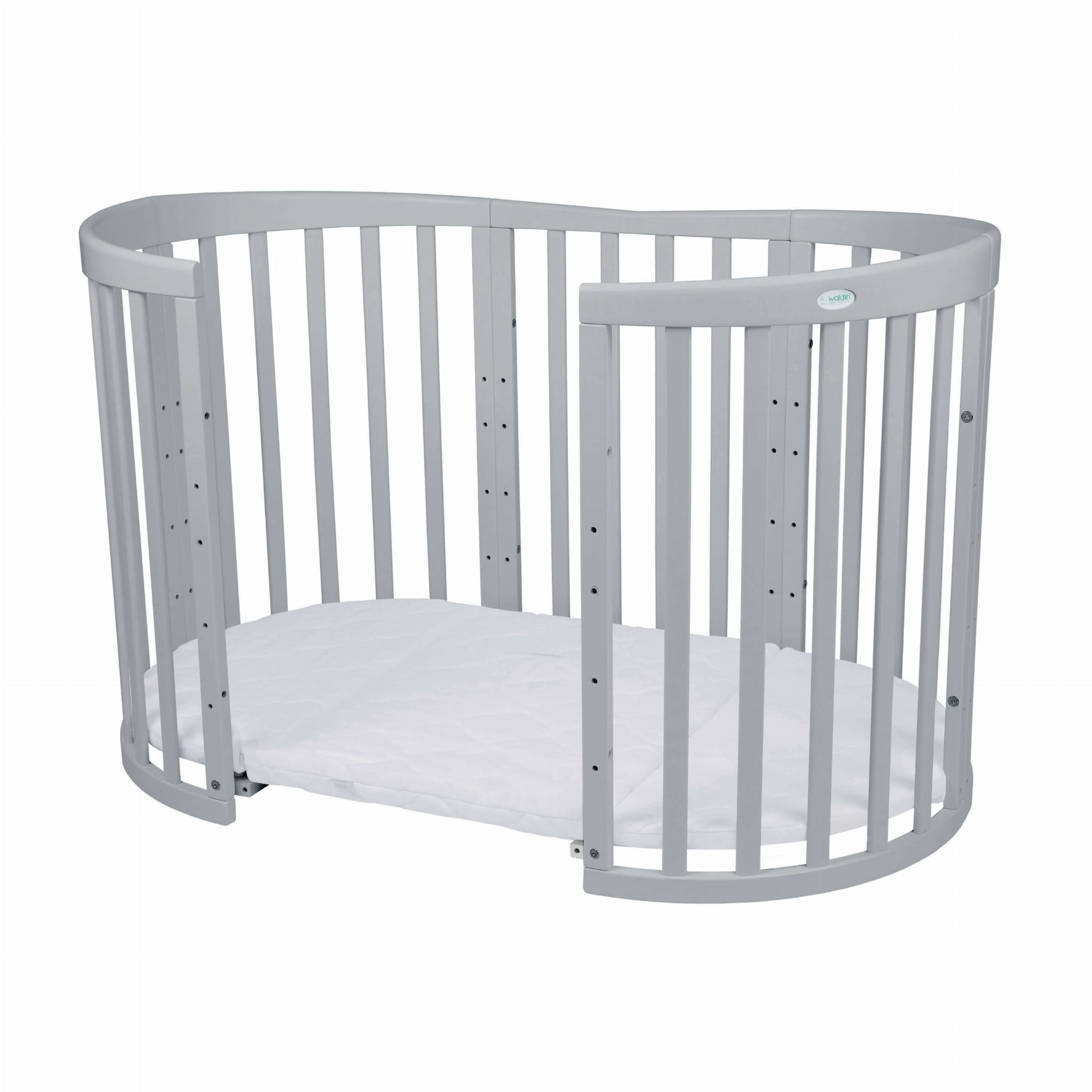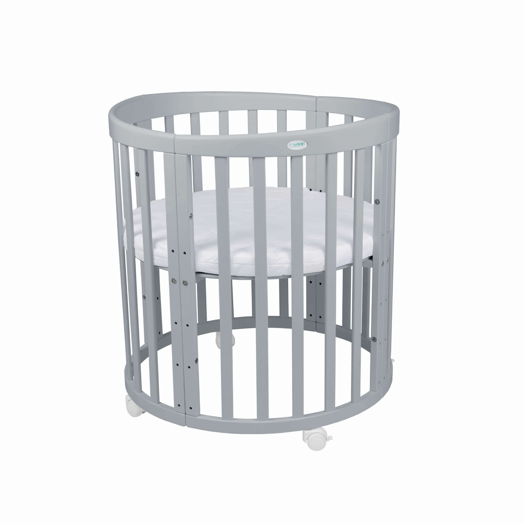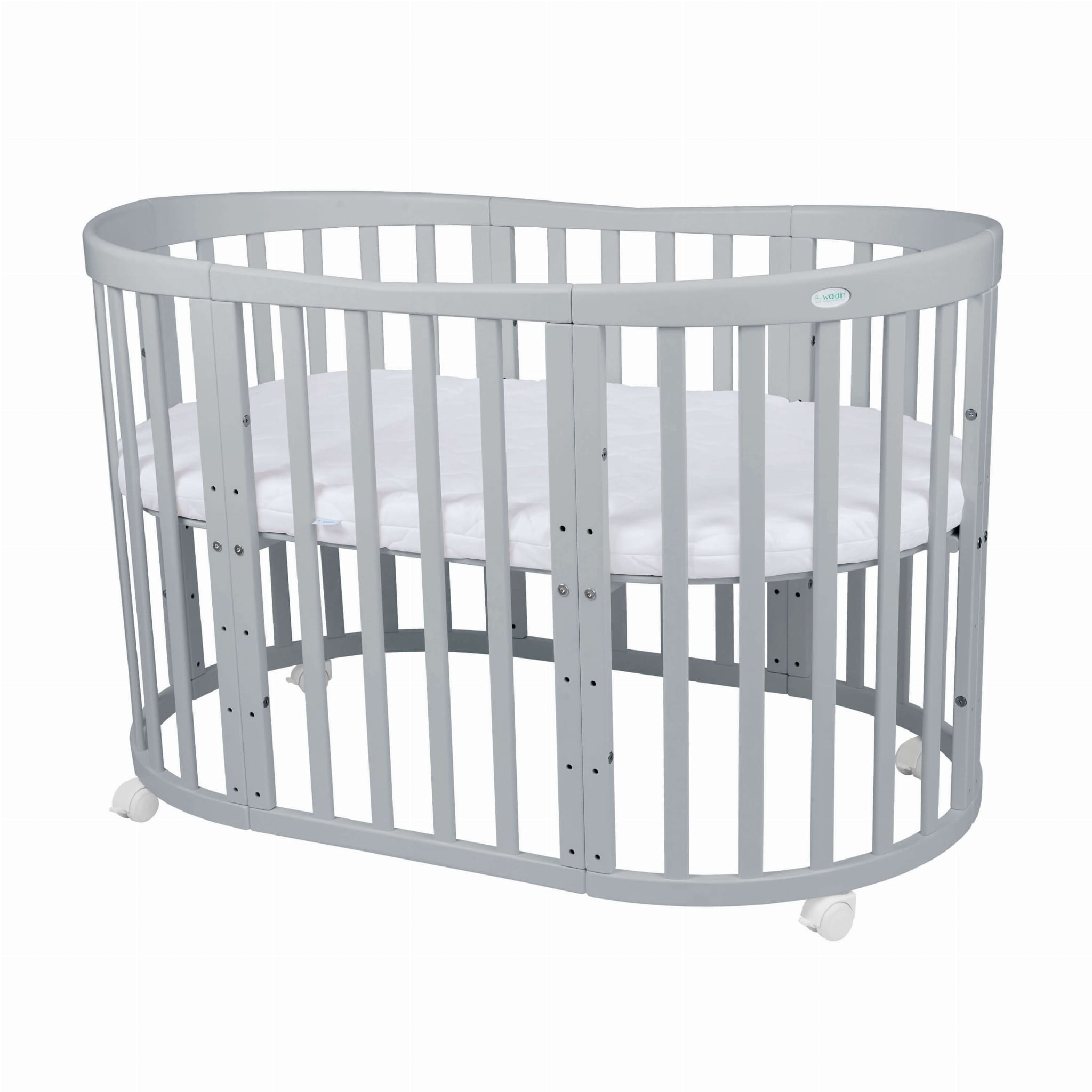Łóżeczko niemowlęce owalne 7w1 z materacem - szare, szer. 78 cm