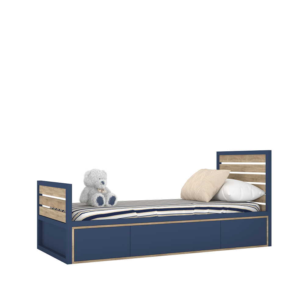 Łóżko TUTU BLUE BAMI to piękny mebel o niebanalnej konstrukcji. Bardzo modna od wielu sezonów bryła idealnie wpasuje się w każdy pokoik dziecięcy. Skandynawska stylistyka jest zarazem nowoczesna ale i również bardzo klasyczna. Do mebla należy dokupić pasujący materac w wymiarze 90x200 cm.