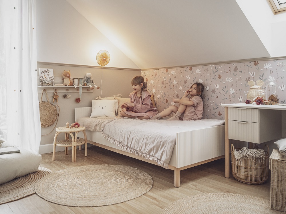 Design kolekcji kładzie nacisk na detal i elegancję – ryflowane fronty dodają charakteru i klasy, zaś delikatnie zaokrąglone narożniki gwarantują bezpieczeństwo młodych użytkowników. Estetyczne metalowe uchwyty oraz drewniane bukowe nóżki nadają meblowi lekkości i finezji. Kolekcja jest dostępna w dwóch kolorach: klasycznym białym oraz szampańskim – świeżym dodatkiem do oferty Pinio, który zdobywa szerokie uznanie wśród klientów.