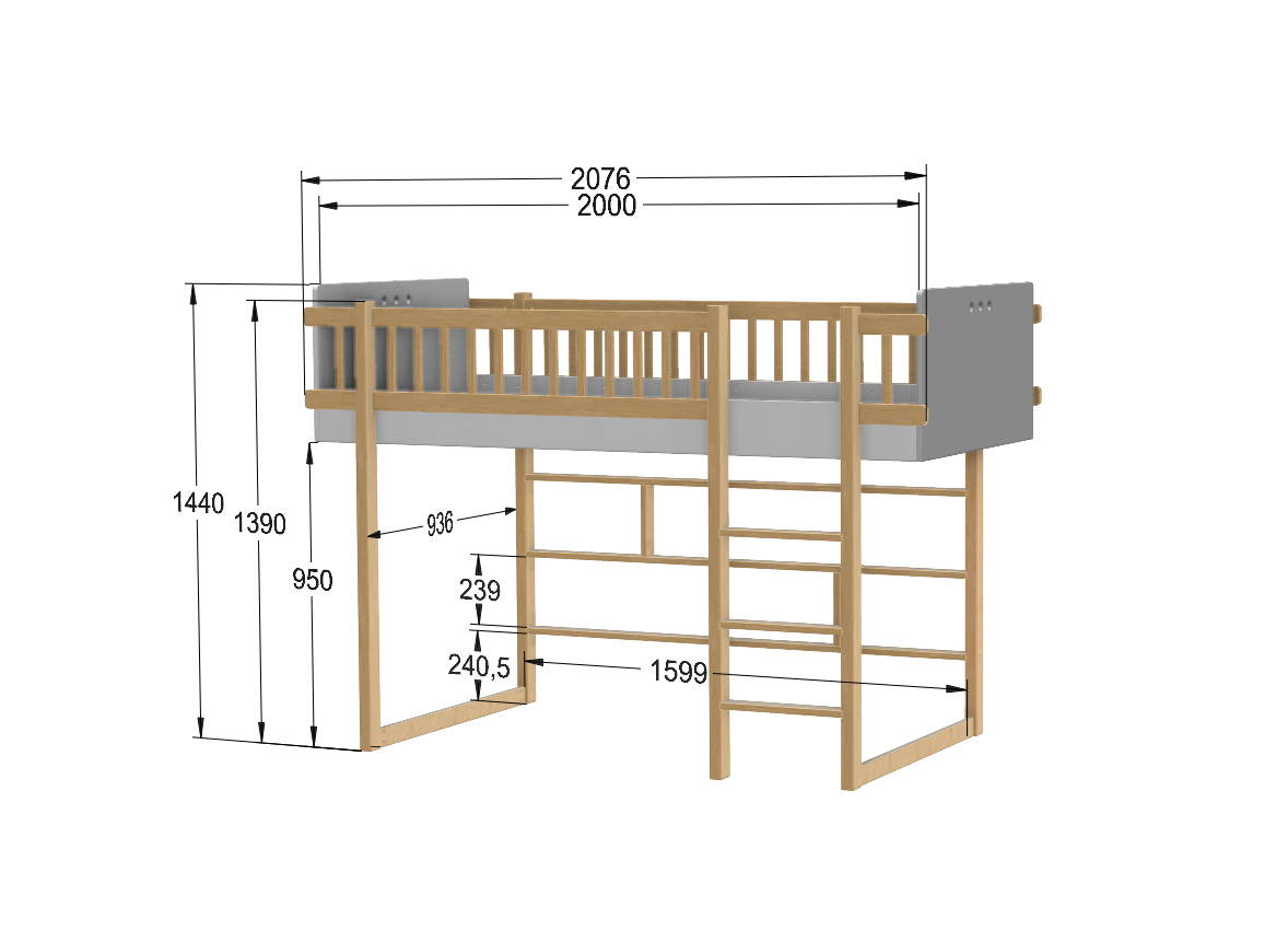 Wyprodukowana zgodnie z normą PN-EN 747-1+Ll:2015 ,. Meble. Łózka piętrowe i łóżka wysokie. Część 1: 'Wymagania bezpieczeństwa oraz wytrzymałości i trwałości " PN-EN 747-2+A|:2015 ", Meble. Łóżka piętrowe i łóżka wysokie, Cześć 2: Metody badań"