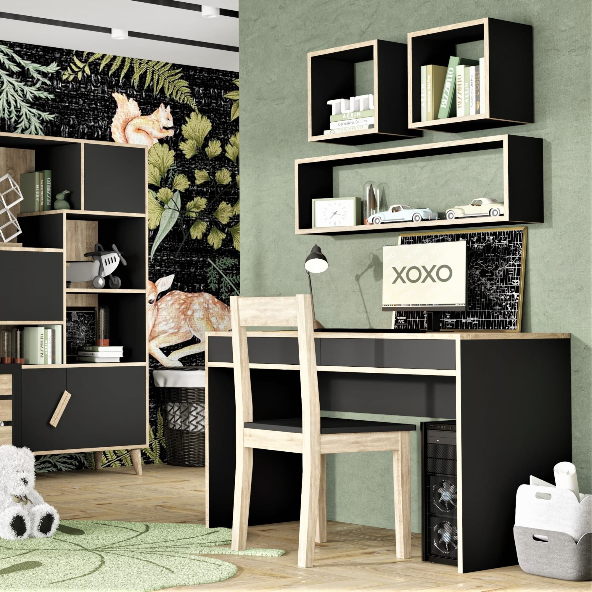 Kolekcja mebli Bami Tutu Black to połączenie skandynawskiego i nowoczesnego stylu, który jest obecnie bardzo modny. Klasyczne połączenie czarnego koloru i elementów z drewna dębowego idealnie wpasuje się w każde wnętrze dziecięcego i młodzieżowego pokoju. Ta uniwersalna stylistyka mebli Bami z kolekcji Tutu Black sprawdzi się zarówno dla chłopca jak i dziewczynki. Proste wzornictwo bez zbędnych detali, pozwala na łączenie mebli pochodzących z tej samej kolekcji lub z innymi meblami dostępnymi w naszej ofercie.