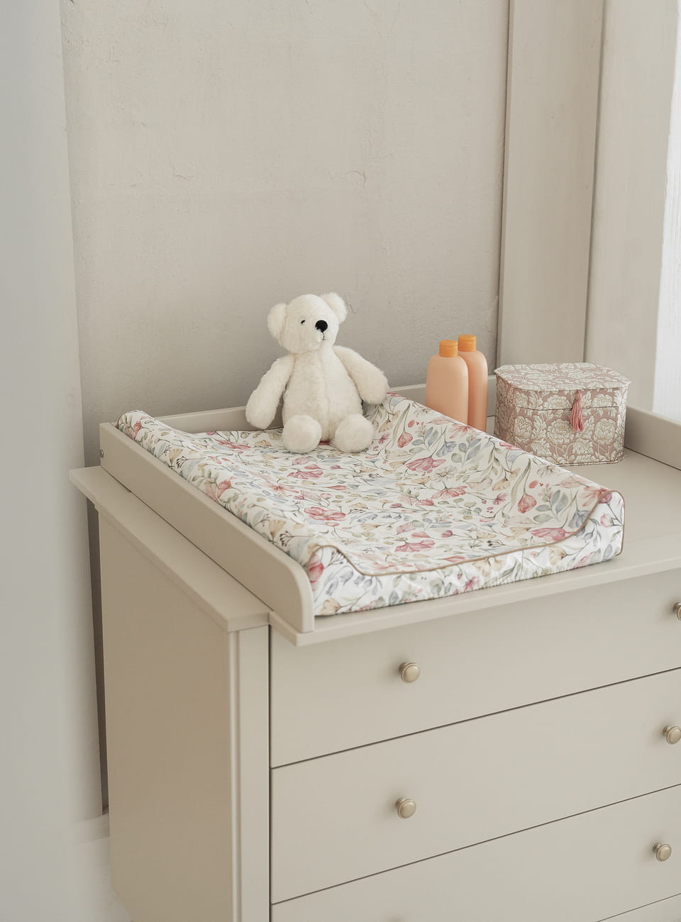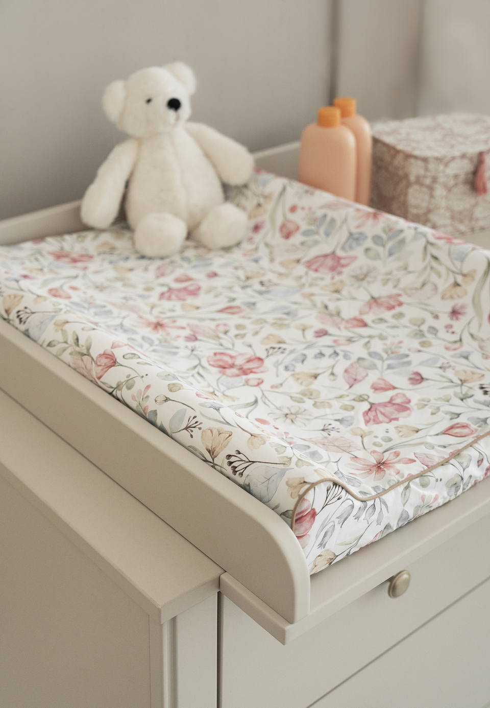 Nakładka pasuje do obu komód z kolekcji Petite. Cena obejmuje samą ramkę - bez wkładu z materiału (materaca).