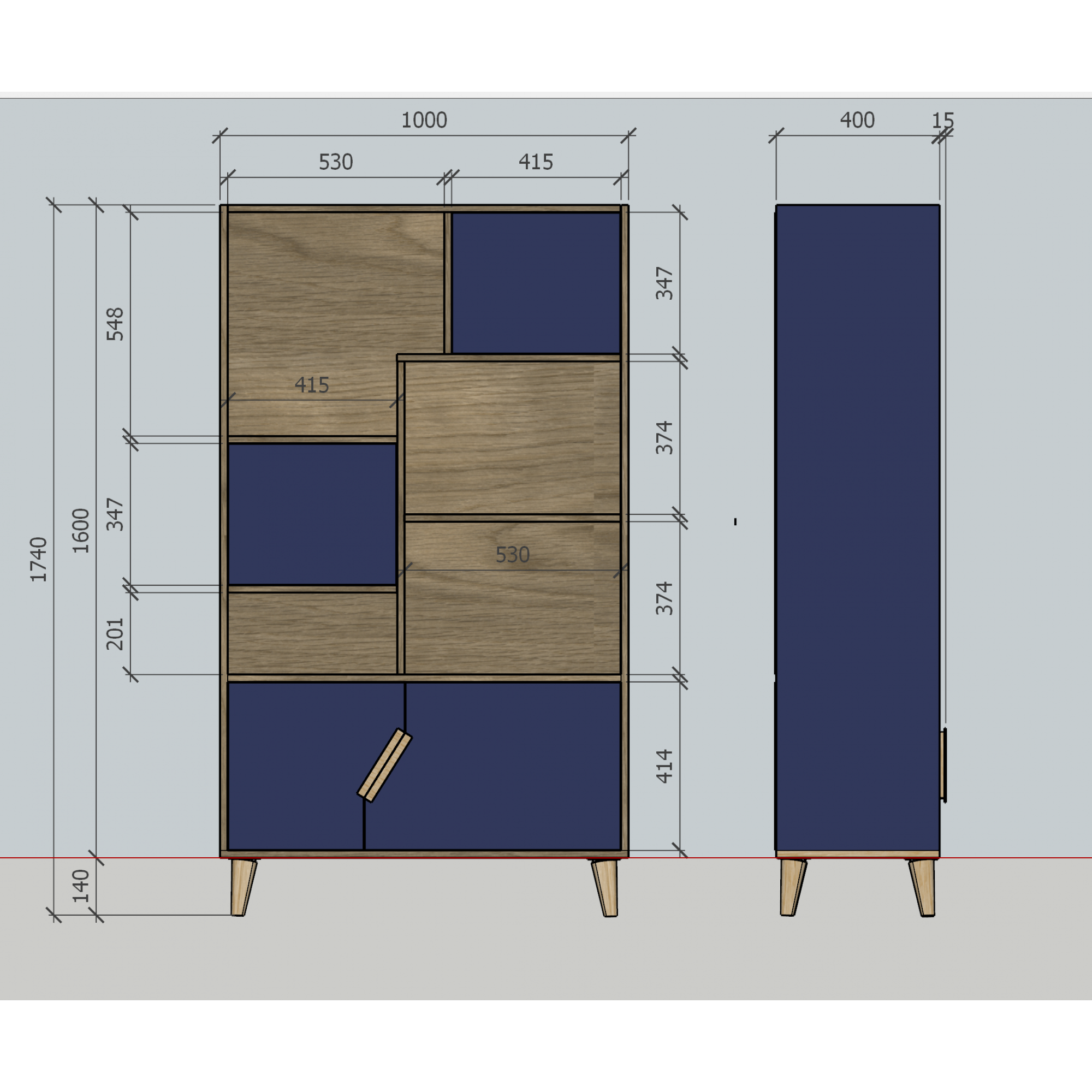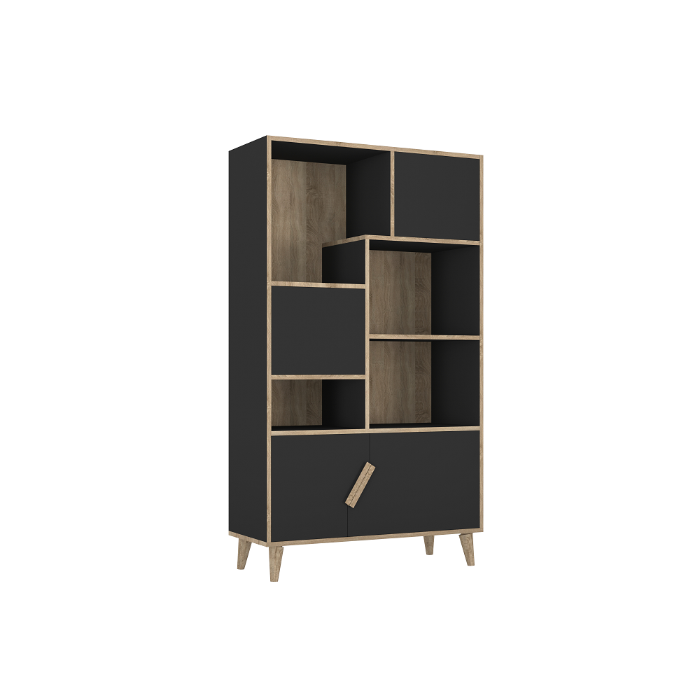 Regał Bami Tutu Black posiada zgrabne, drewniane nóżki, które nadają lekkości całej formie. Jest na tyle pojemny żeby pomieścić na prawdę wiele rzeczy. Ubrania, bielizna, pościel, zabawki, książeczki – regał Tutu White pozwala na wygodną organizację ubrań oraz wszelkich akcesoriów i bez wątpienia stanie się sprzymierzeńcem w utrzymywaniu harmonii i porządku w pokoju dziecka. Jest Podzielona na kilka części z półkami w tym jedna półka z możliwością regulacji wysokości. Na dole znajduje się zamykana parą drzwiczek szafka z drewnianymi uchwytami. Czarne kwadraty są kolejnymi drzwiczkami, zamykanymi na tzw. tip-on, za którymi kryją dwie pojemne szafki.