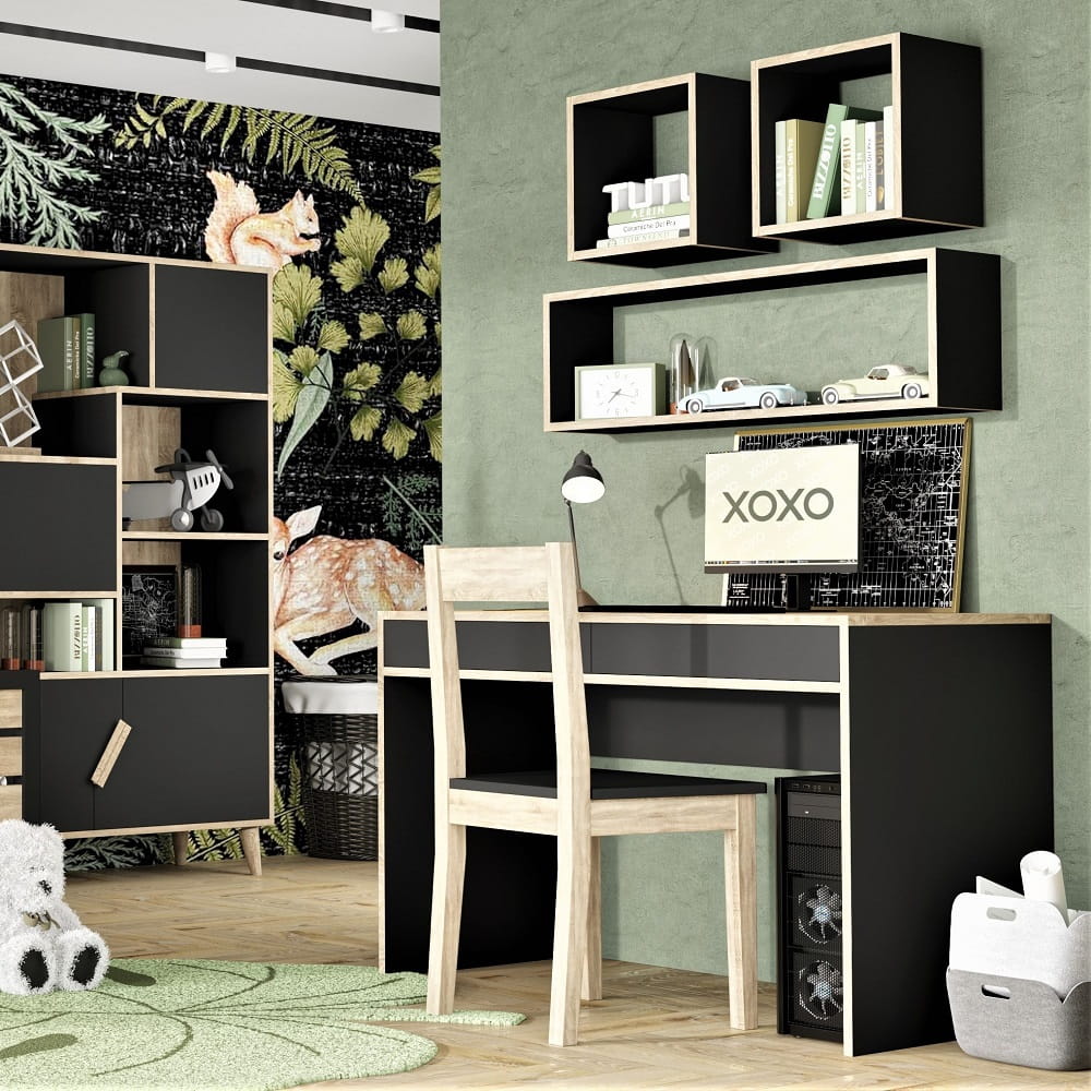 Kolekcja mebli Bami Tutu Blackto połączenie skandynawskiego i nowoczesnego stylu, który jest obecnie bardzo modny. Klasyczne połączenie czarnego koloru i elementów z drewna dębowego idealnie wpasuje się w każde wnętrze dziecięcego i młodzieżowego pokoju. Ta uniwersalna stylistyka mebli Bami z kolekcji Tutu Black sprawdzi się zarówno dla chłopca jak i dziewczynki. Proste wzornictwo bez zbędnych detali, pozwala na łączenie mebli pochodzących z tej samej kolekcji lub z innymi meblami dostępnymi w naszej ofercie.