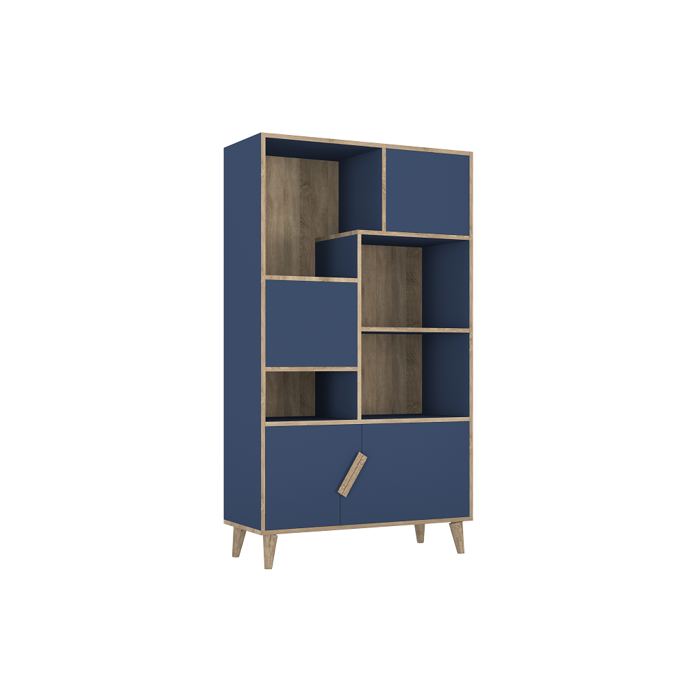 Regał Bami Tutu Blue posiada zgrabne, drewniane nóżki, które nadają lekkości całej formie. Jest na tyle pojemny żeby pomieścić na prawdę wiele rzeczy. Ubrania, bielizna, pościel, zabawki, książeczki – regał Tutu White pozwala na wygodną organizację ubrań oraz wszelkich akcesoriów i bez wątpienia stanie się sprzymierzeńcem w utrzymywaniu harmonii i porządku w pokoju dziecka. Jest Podzielona na kilka części z półkami w tym jedna półka z możliwością regulacji wysokości. Na dole znajduje się zamykana parą drzwiczek szafka z drewnianymi uchwytami. Czarne kwadraty są kolejnymi drzwiczkami, zamykanymi na tzw. tip-on, za którymi kryją dwie pojemne szafki.