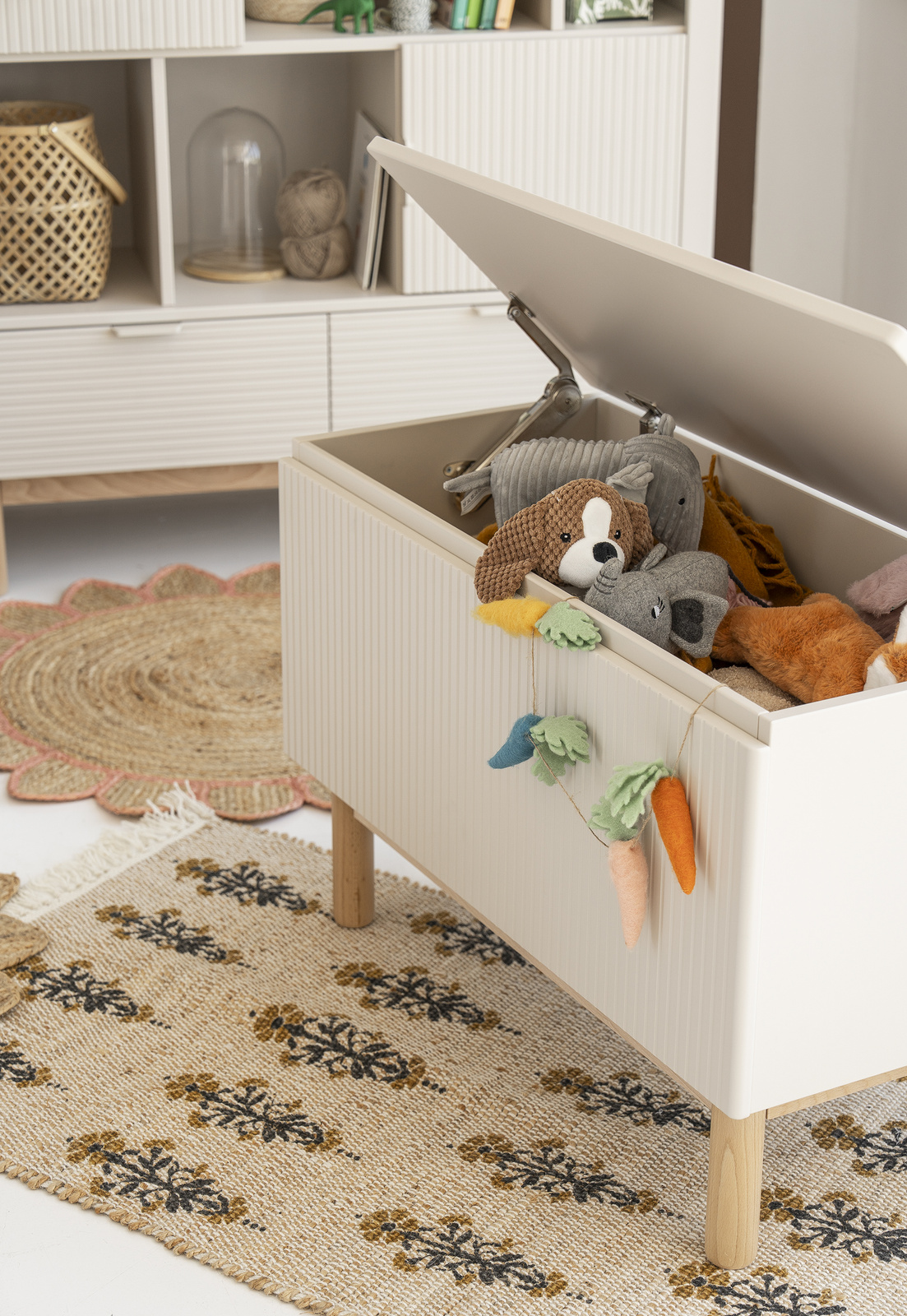 Skrzynia Miloo to nie tylko mebel do przechowywania – to praktyczny element wystroju, który wspiera dziecko w nauce samodzielności i dbania o porządek już od najmłodszych lat.