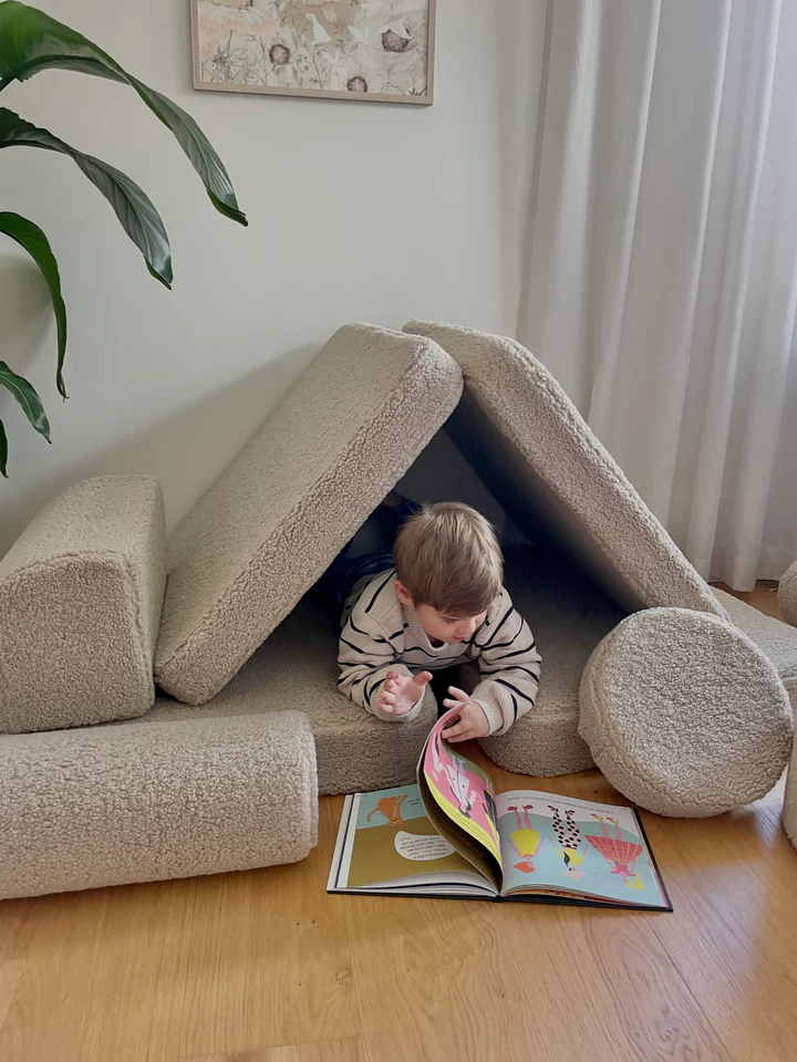 Zachęcaj małych budowniczych do uwolnienia kreatywności. 9-częściowa kanapa oferuje nieskończone możliwości kreatywnej zabawy – wystarczy zobaczyć, jak słodka sofa zmienia się w samochód lub sekretną chatkę, aby przeżyć kreatywne przygody.