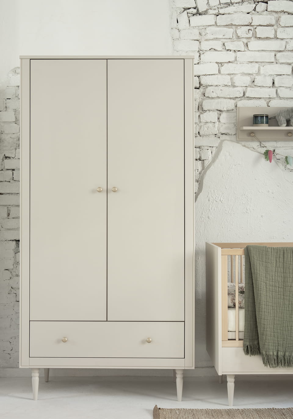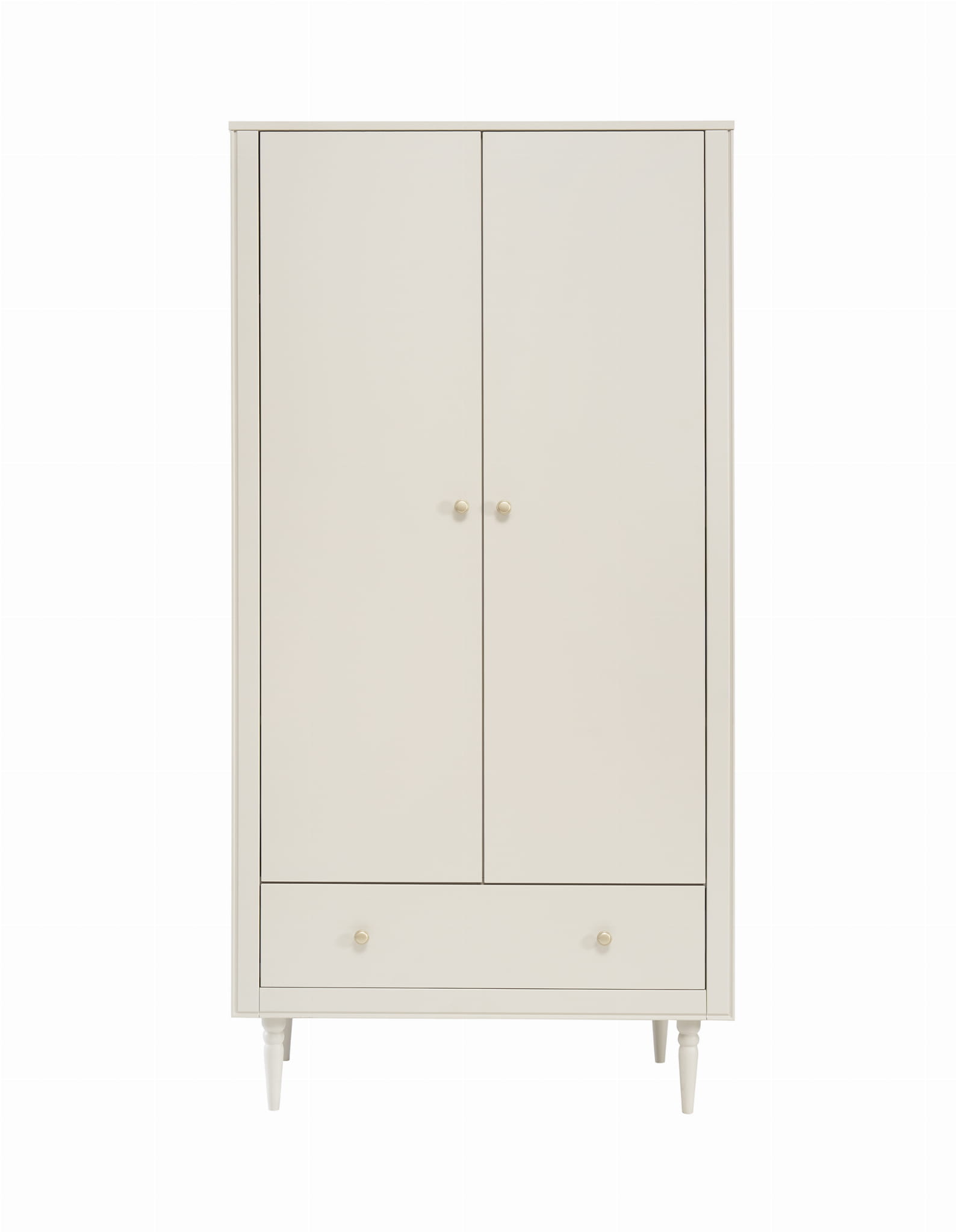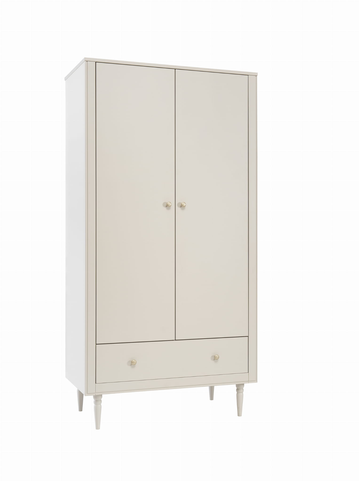 Dwudrzwiowa szafa w klasycznym stylu z kolekcji Petite posiada wysokiej jakości system cichego zamykania. Wnętrze szafy zostało zaprojektowane z myślą o praktycznym przechowywaniu ubrań i akcesoriów.
