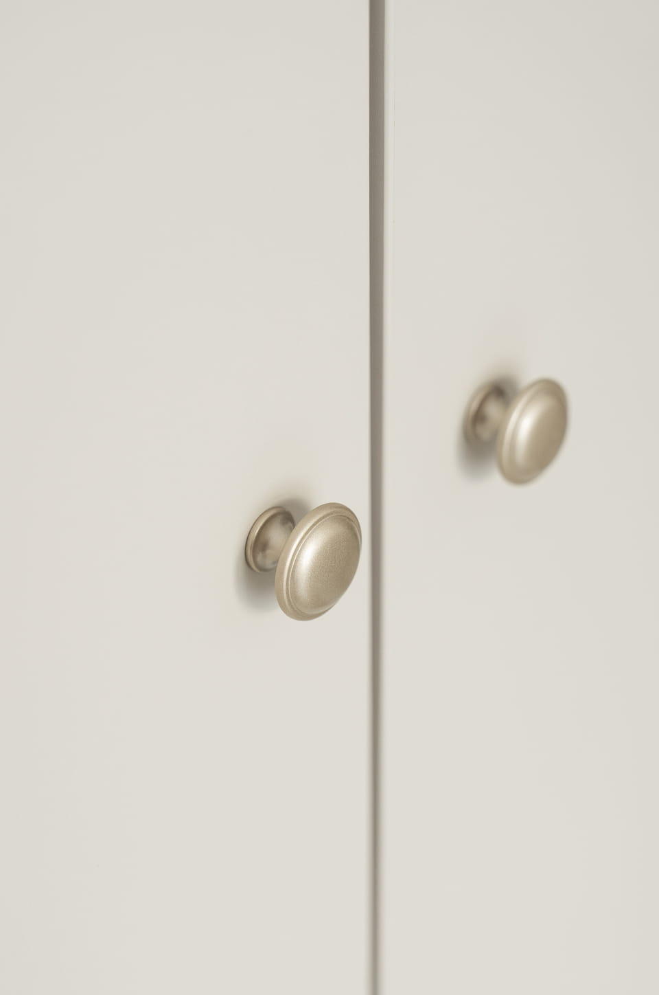 Nóżki wykonane z litego drewna bukowego zapewniają trwałość i stabilność, a jednocześnie wprowadzają naturalny element do całości. Delikatne włoskie uchwyty w odcieniu zgaszonego złota stanowią elegancki detal, harmonijnie współgrający z szampańską kolorystyką mebli, nadając im wyjątkowego blasku.