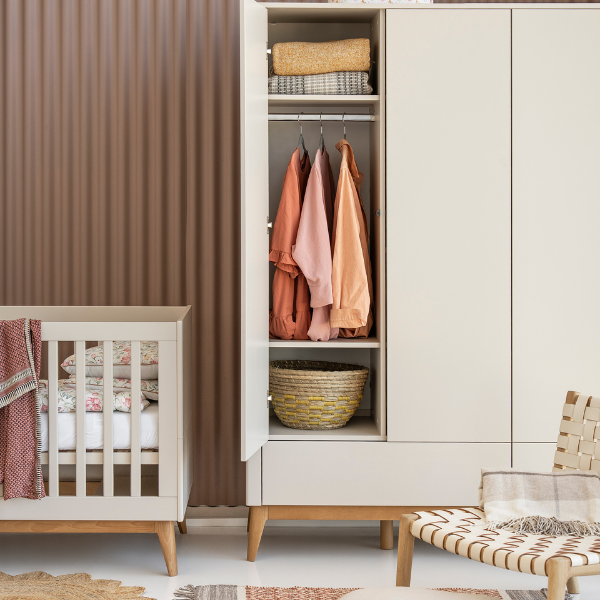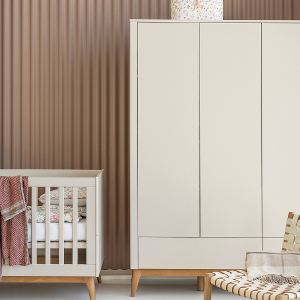 Kolekcja Petite wyróżnia się unikalnym połączeniem estetyki skandynawskiej z akcentami stylu Art Déco. Lekka konstrukcja łóżeczka, znakomite detale oraz elementy z litego drewna bukowego nadają mu wyjątkowego charakteru. Delikatne, włoskie uchwyty w odcieniu zgaszonego złota doskonale współgrają z elegancką szampańską kolorystyką mebli. Wysokość nóżek wynosząca 19,5 cm sprawia, że łóżeczko jest funkcjonalne i praktyczne, na przykład umożliwiając wjazd robota sprzątającego.