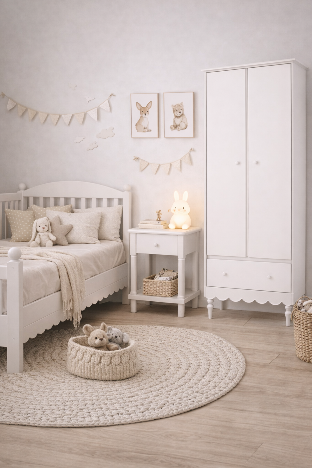 Biała szafka nocna dla dziecka to praktyczne miejsce na lampkę nocną, książeczki do czytania przed snem, ulubione zabawki lub drobne akcesoria. Dzięki swojej uniwersalnej formie i kompaktowym wymiarom sprawdzi się zarówno w pokoju niemowlęcym, jak i w pokoju starszego dziecka.