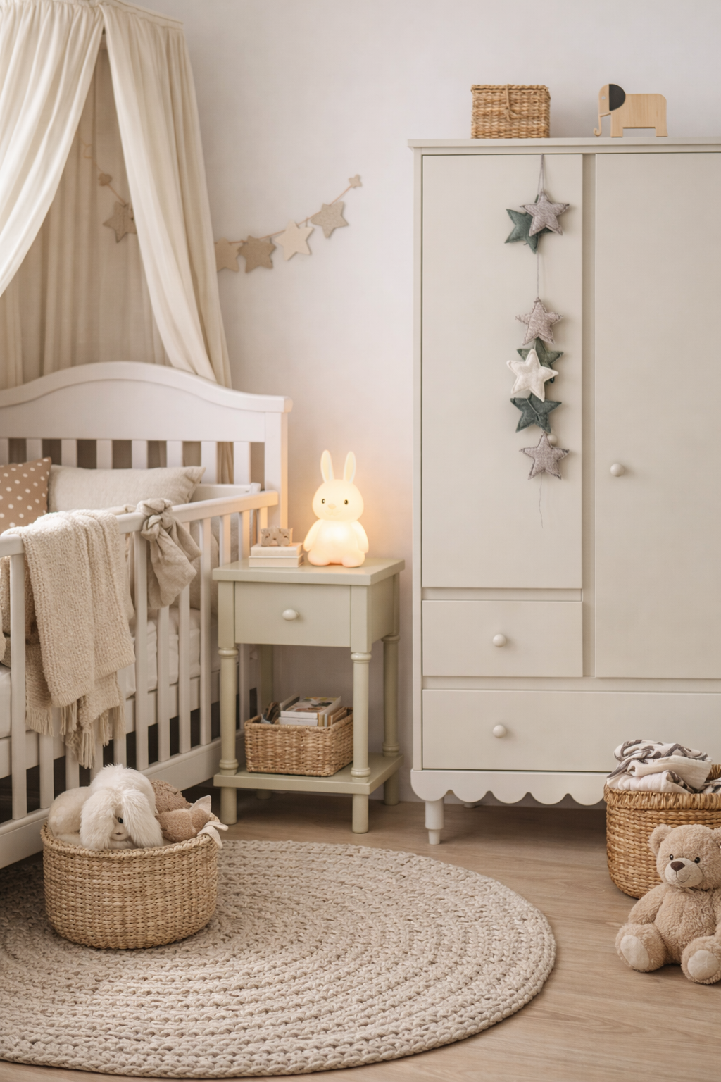 Oliwkowa szafka nocna dla dziecka to idealne miejsce na lampkę nocną, książeczki, zabawki lub drobiazgi potrzebne przed snem. Dzięki kompaktowym wymiarom sprawdzi się zarówno w pokoju niemowlaka, jak i starszego dziecka.