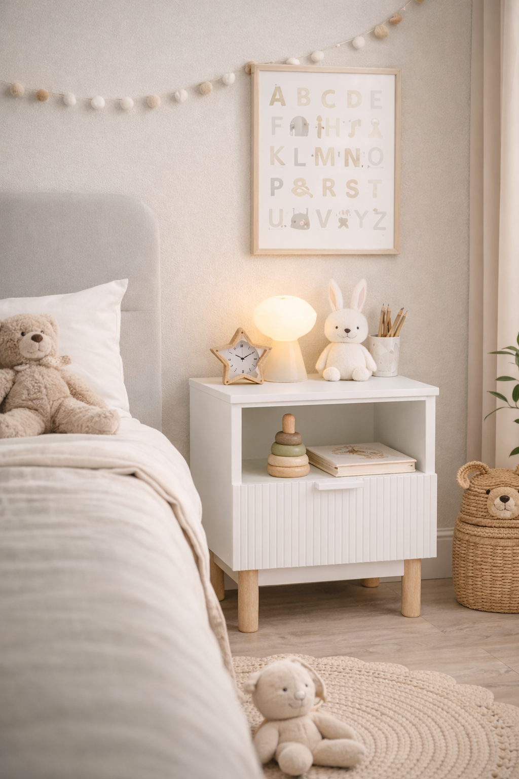 Szafka nocna MILOO biała – elegancja i funkcjonalność w pokoju dziecka