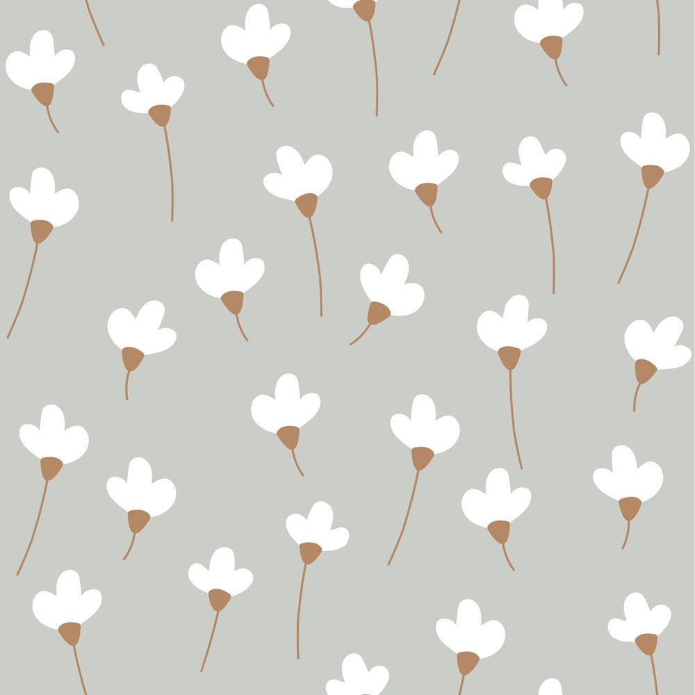 Tapeta dziecięca w białe stokrotki na jasnoszarym tle