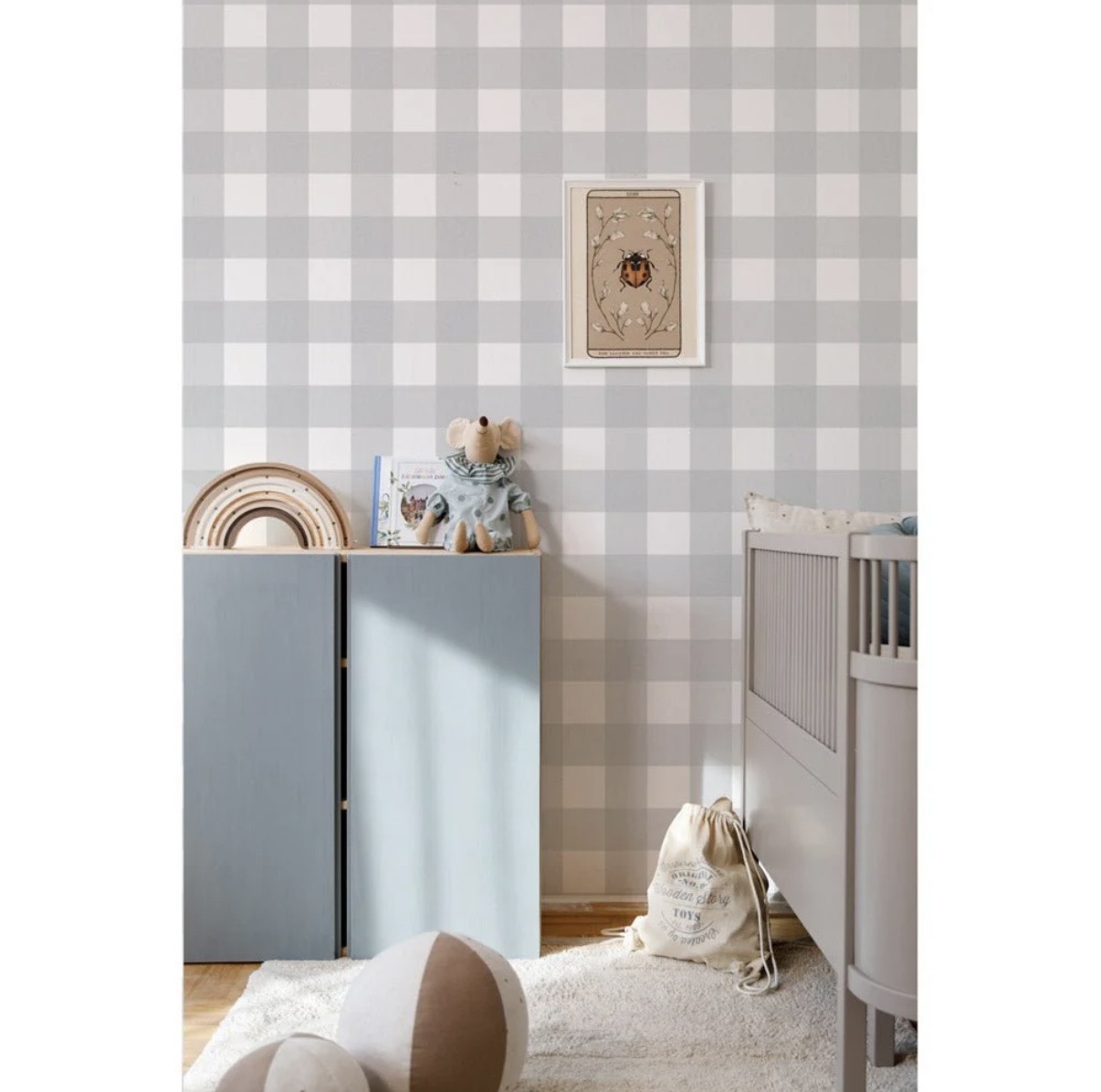 Tapeta dziecięca w szarą kratkę to ponadczasowy i bardzo uniwersalny wzór, który świetnie sprawdzi się w każdym pokoju dziecka. Delikatny, chłodny odcień szarości wprowadza do wnętrza spokój i harmonię, jednocześnie pozostając neutralnym tłem dla całej aranżacji.